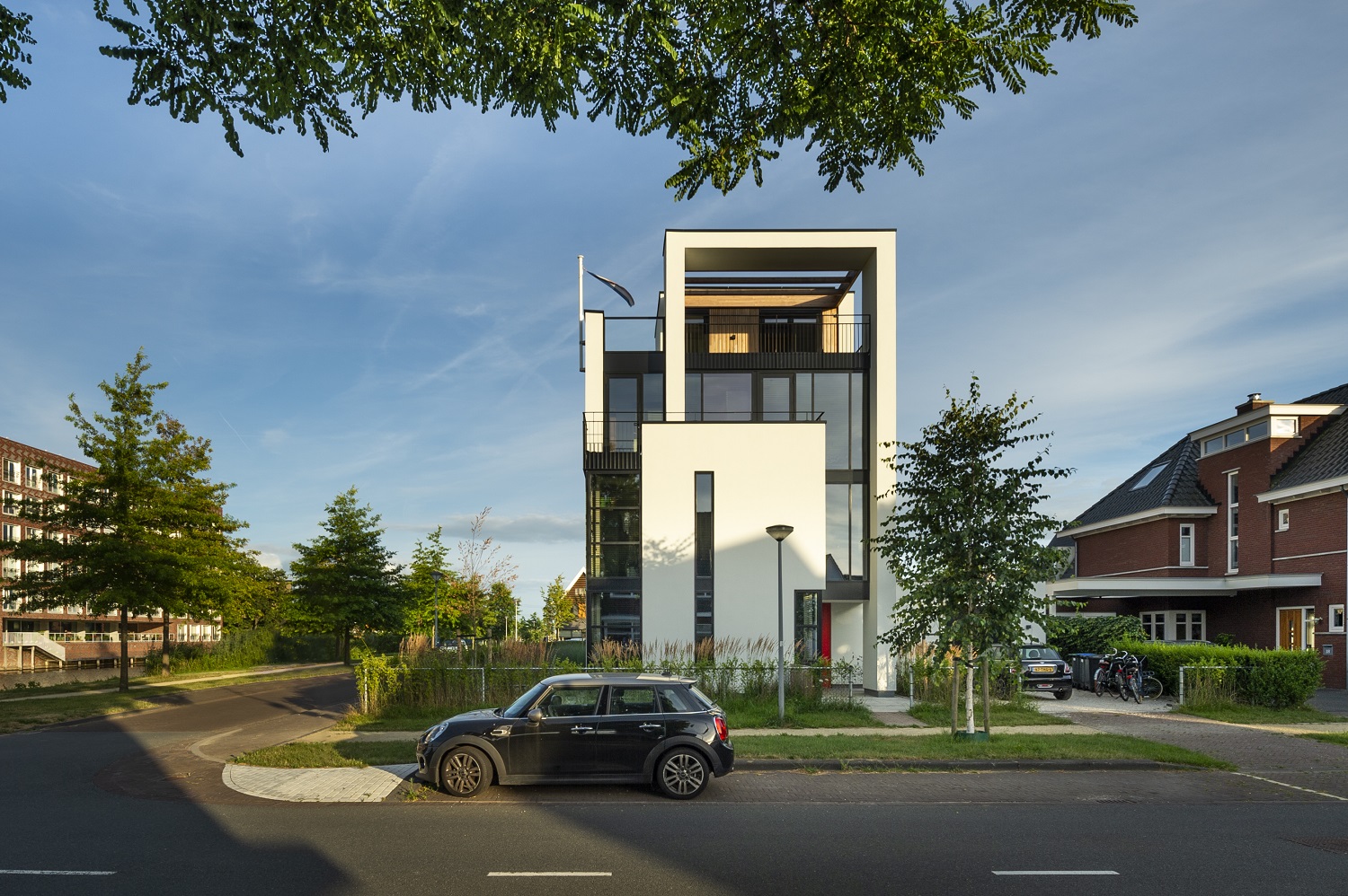 Zonder het door te hebben, werd Justin Braam tijdens de bouw in de gaten gehouden. Niet door een opzichter van de gemeente of nieuwsgierige buurman, maar wel door een dame op leeftijd, wonend in een appartement aan de overkant van het water. Pas na de oplevering sprak ze hem aan, in de lokale supermarkt, om haar mening over de markante nieuwbouwwoning te geven.
