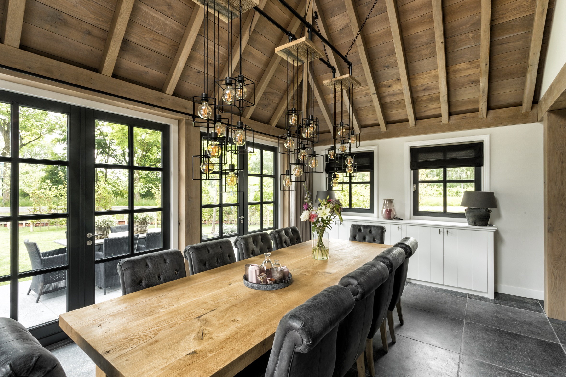 Het huis ligt mooi en is mooi. Het ontwerp van de architect is prachtig uitgevoerd. De geheel in eiken uitgevoerde kap vind ik echt een eyecatcher. Net als de zware eiken balken van de uitbouw en veranda, die, in combinatie met de zwart gepotdekselde planken, aan het totaalplaatje bijdragen waarvoor we veel complimenten ontvangen. En de dakkapel hebben we trouwens ook in eiken laten timmeren. Daar was Tim wel even mee bezig.