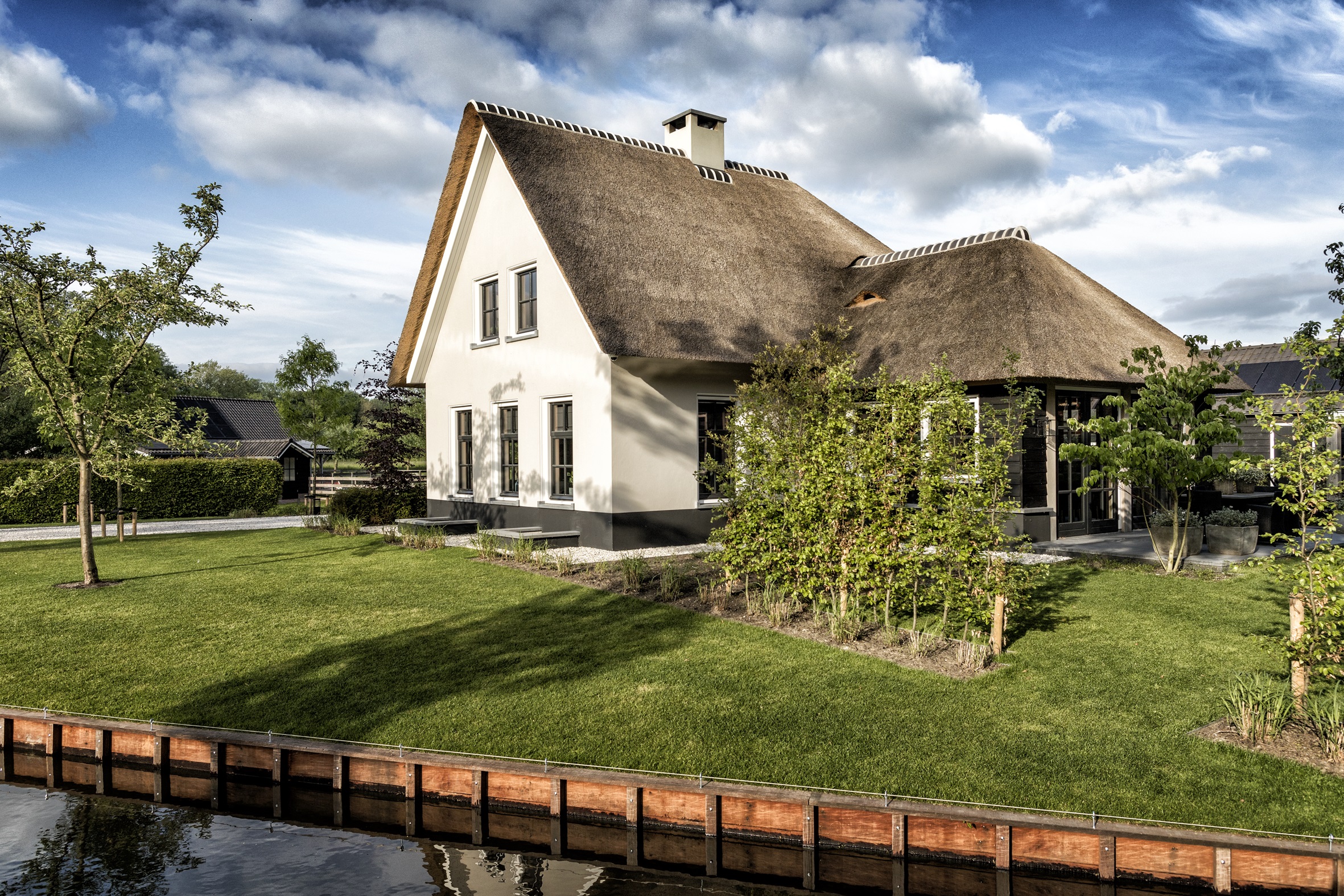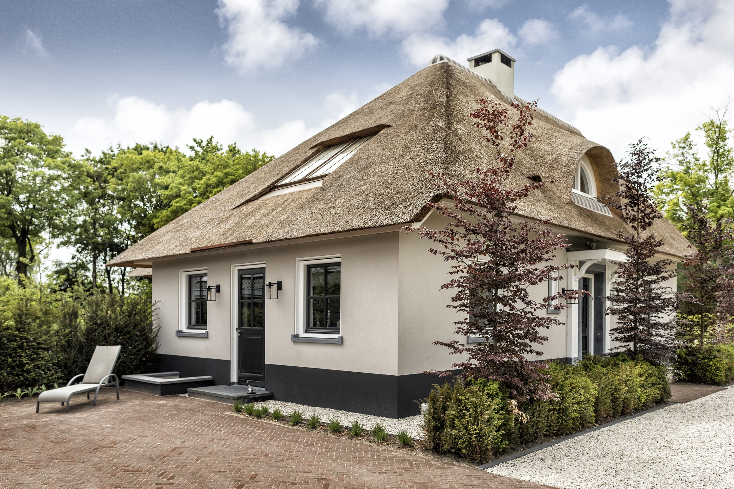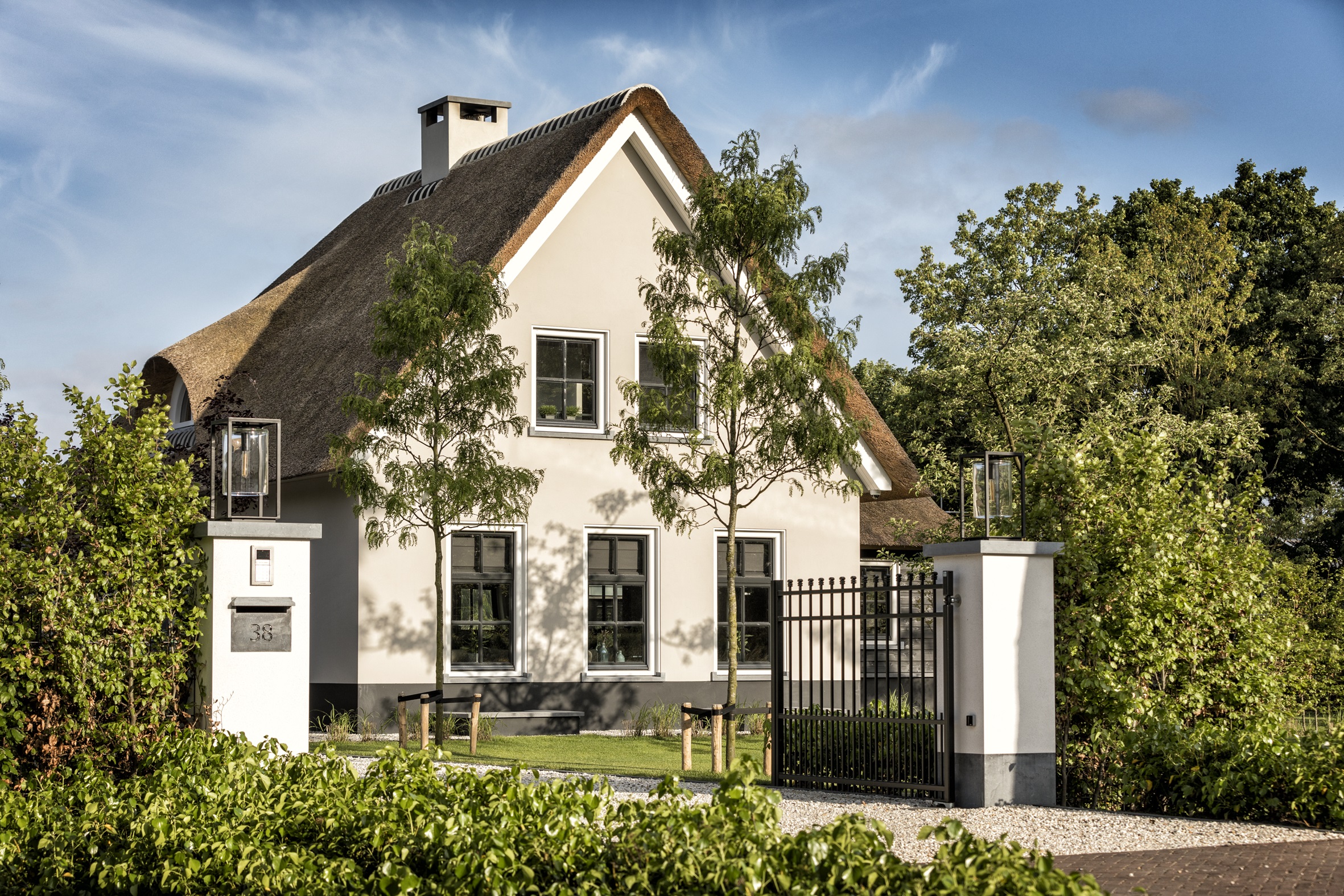 Toen ik de kavel zag liggen, begon er meteen een idee te ontstaan: een vrijstaande woning met een rieten kap, met een zodanige uitstraling dat je niet weet of het huis oud of nieuw is. Daarnaast dacht ik aan lichtgrijs stucwerk, want in het wit zou het huis een Goois karakter krijgen.