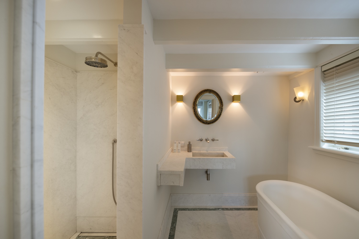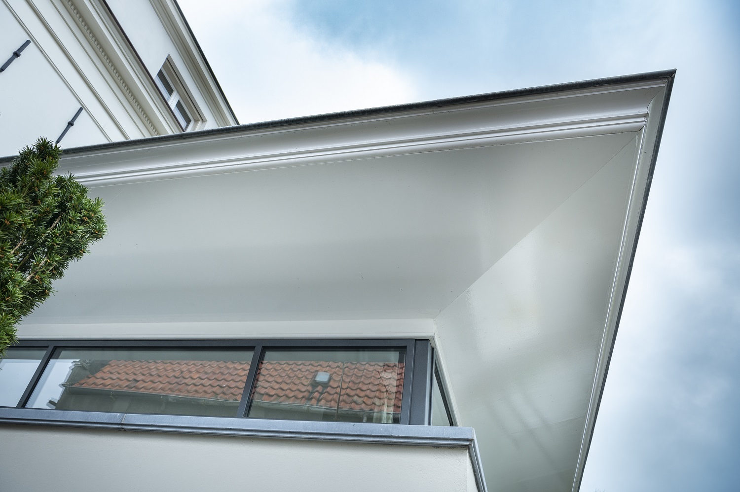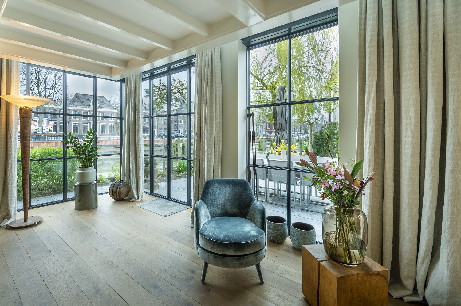 Als je van klassiek houdt, ga je dit huis zeker fraai vinden. Het klopt gewoon. Er zit ontzettend veel timmerwerk in, kijk maar eens naar de lijsten, profielen en paneeldeuren. Of wat te denken van het dak, met al het koper en zink, echt gigantisch veel werk. De aanbouw, ontworpen door PRS, vind ik mooi en geslaagd. Past perfect bij het oude huis. Daarbij ervaar je dat klassiek en modern prima samengaan. De schuine lijn van het overstek contrasteert bijvoorbeeld tegen de randprofilering, de stalen kozijnen steken af tegen de lambrisering van het natuursteen op het terras.